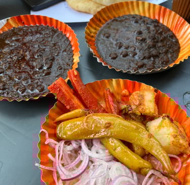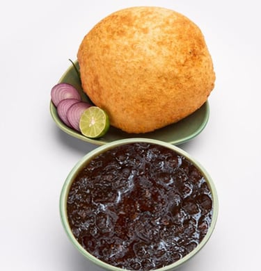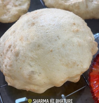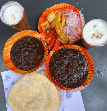 Famous black chole [chickpeas not chana] prepared in traditional and old delhi's secret recipe served with soft bhature. You can always instruct if you like your bhature to be fried till it is red in colour and we'll cater to your request